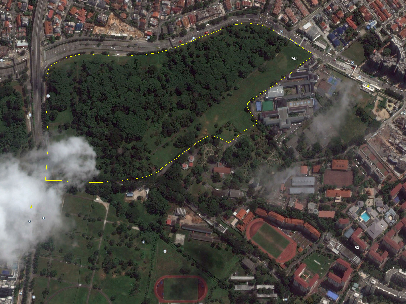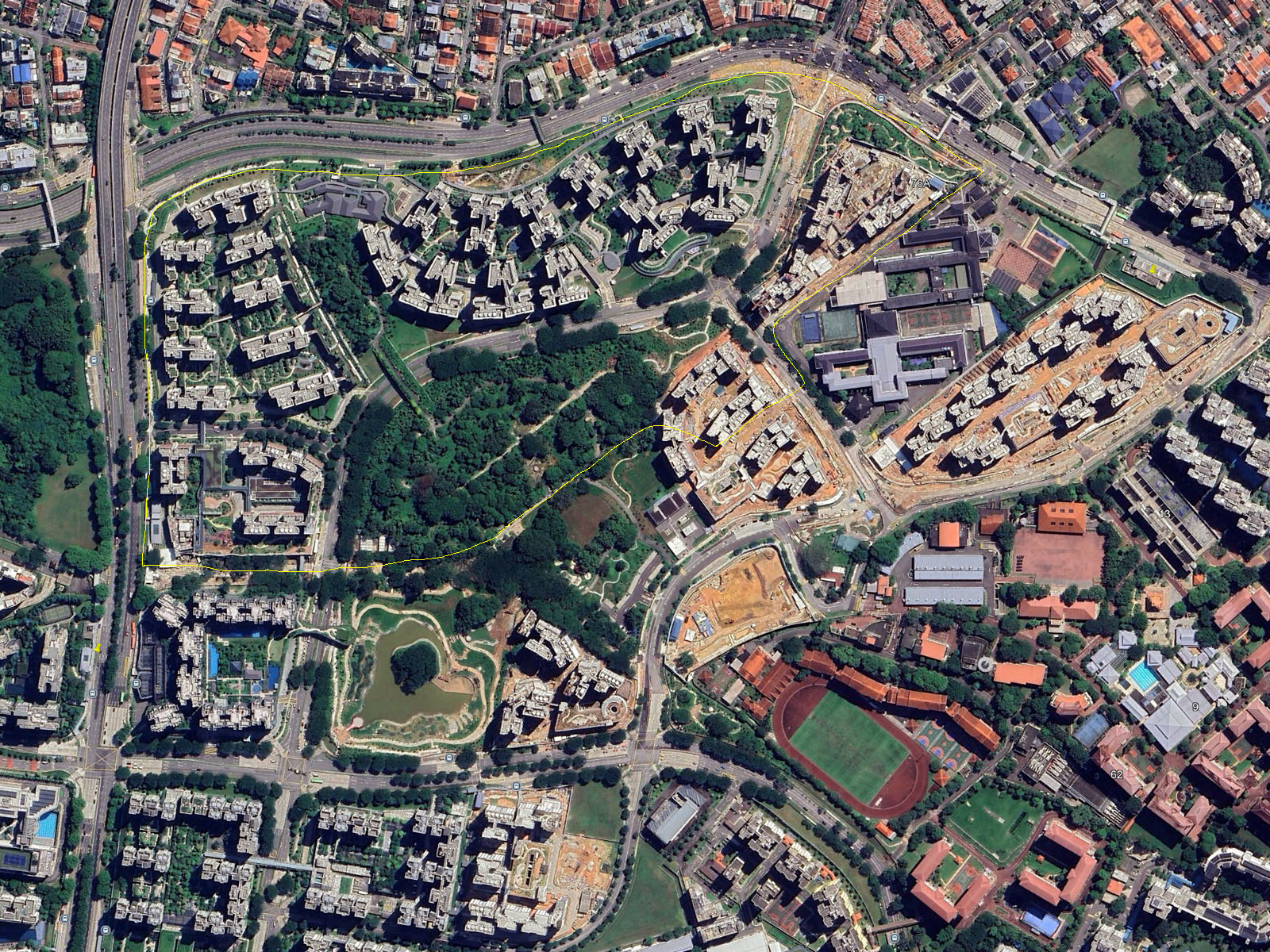 New birders might wonder how the new park compares to the old Bidadari. While the green space may still serve as a migrant trap, the old and new locations share little physical overlap. Below are Google Earth images from 2014 and the latest from 2024, with a thin yellow line roughly outlining the border of the old Bidadari.