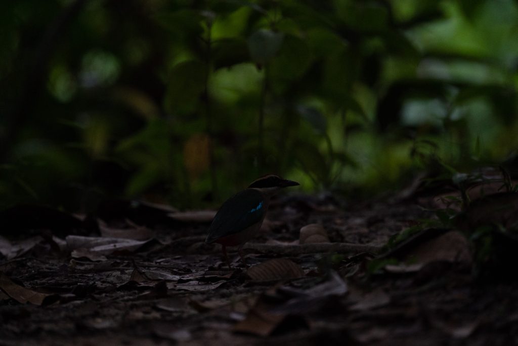 Fairy Pitta at Dillenia Hut. Exposure adjusted upwards, more than what the eye saw, colour temperature adjusted warmer.