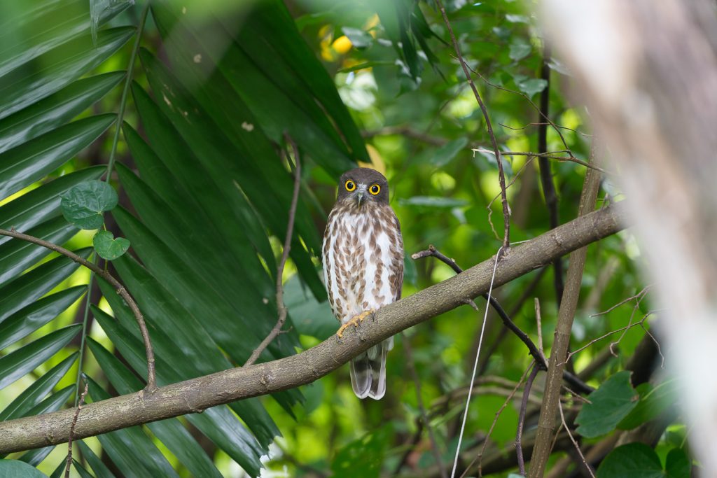 Collared Scops Owl at Singapore Botanic Gardens. Original, uncropped. Compared to the featured photo of this article, the exposure, tint and contrast of this photo differ significantly. I chose this because most local photographers would have encountered this owl in this environment and can judge the condition and colours.