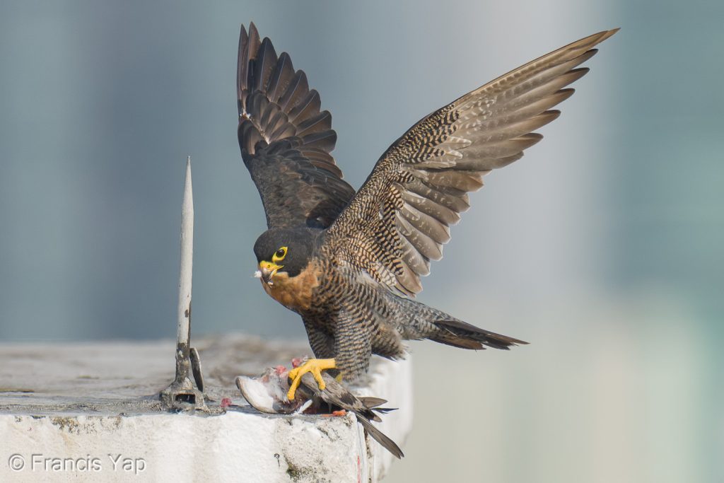 Peregrine Falcon at Jalan Kukoh. Much less often, I get lucky and it’s a more dramatic action shot.