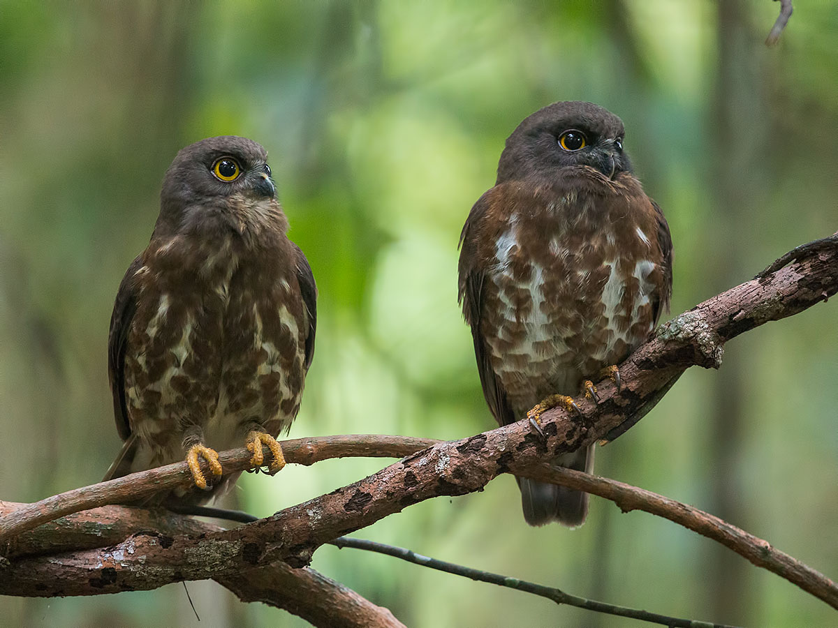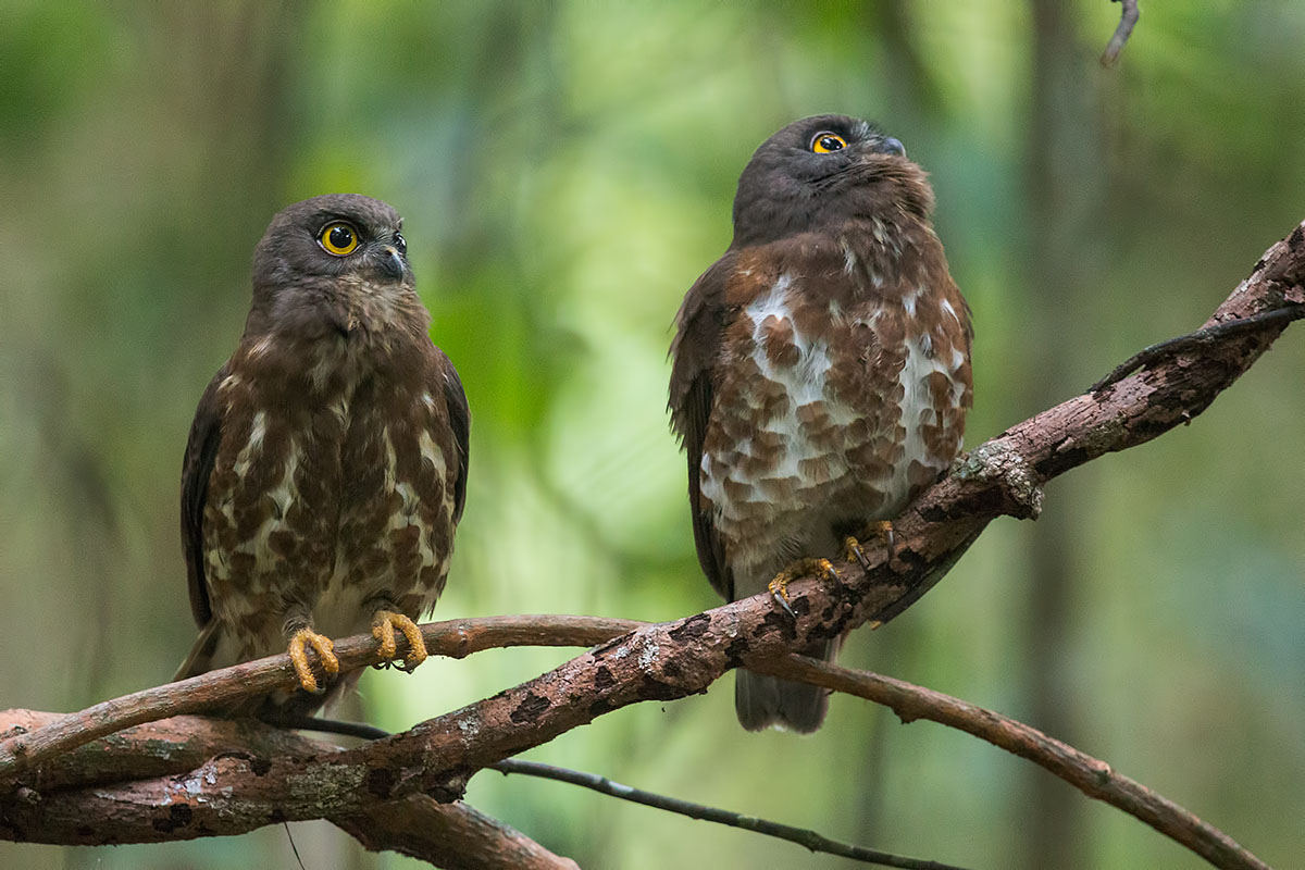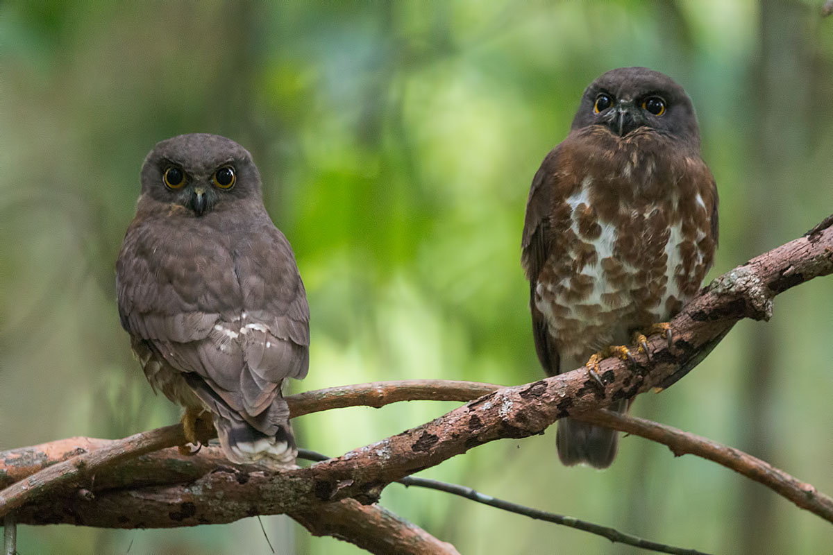 - The first owl is to the right and the second one is to the left. The second one is actually calling. See the raised throat area. As the owls were confiding, I could position myself so that both owls were in the same focal place, which is a stroke of good luck.