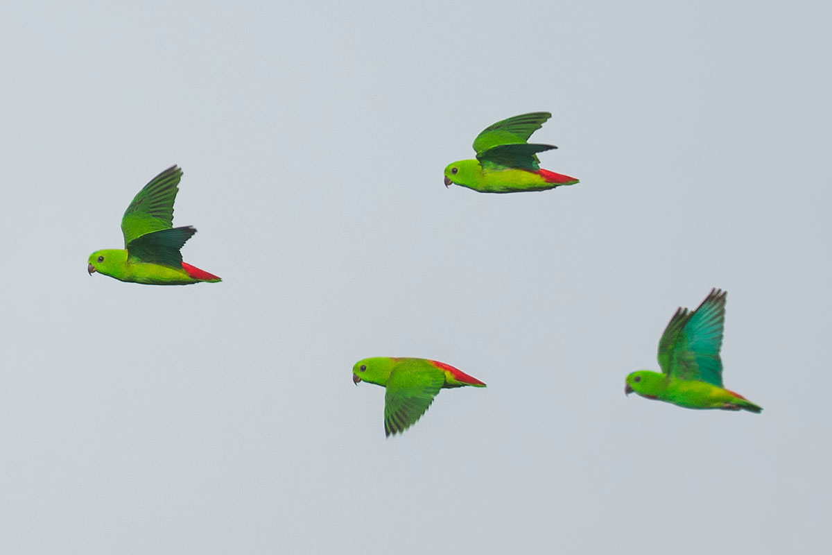 A very good place to see them flying about is Jelutong Tower at the Central Catchment Nature Reserves. Every morning, there will be little torpedo-like little green birds flying straight and rather low, with their calls emanating loudly. If you are lucky, they will perch on a nearby tree, giving you better views.