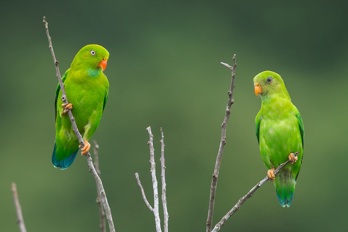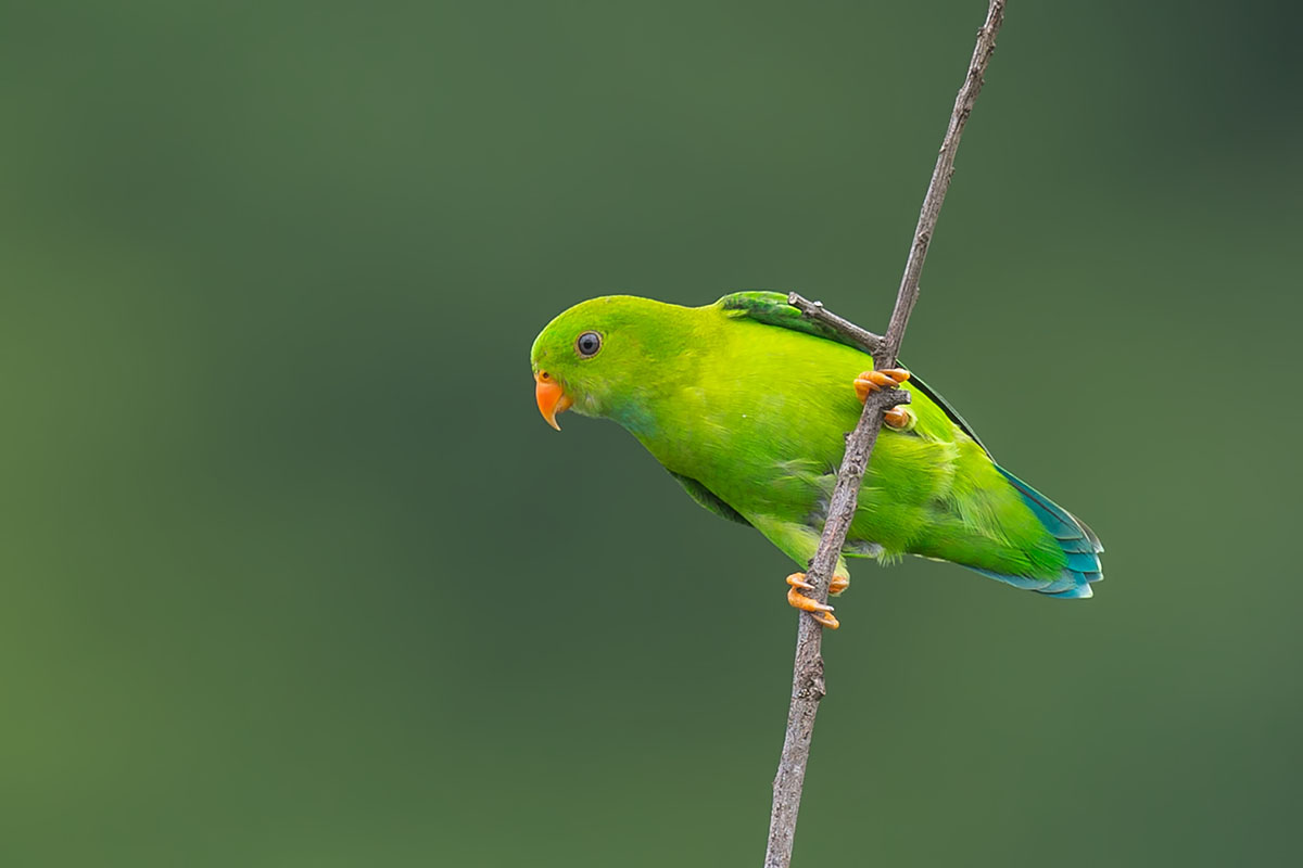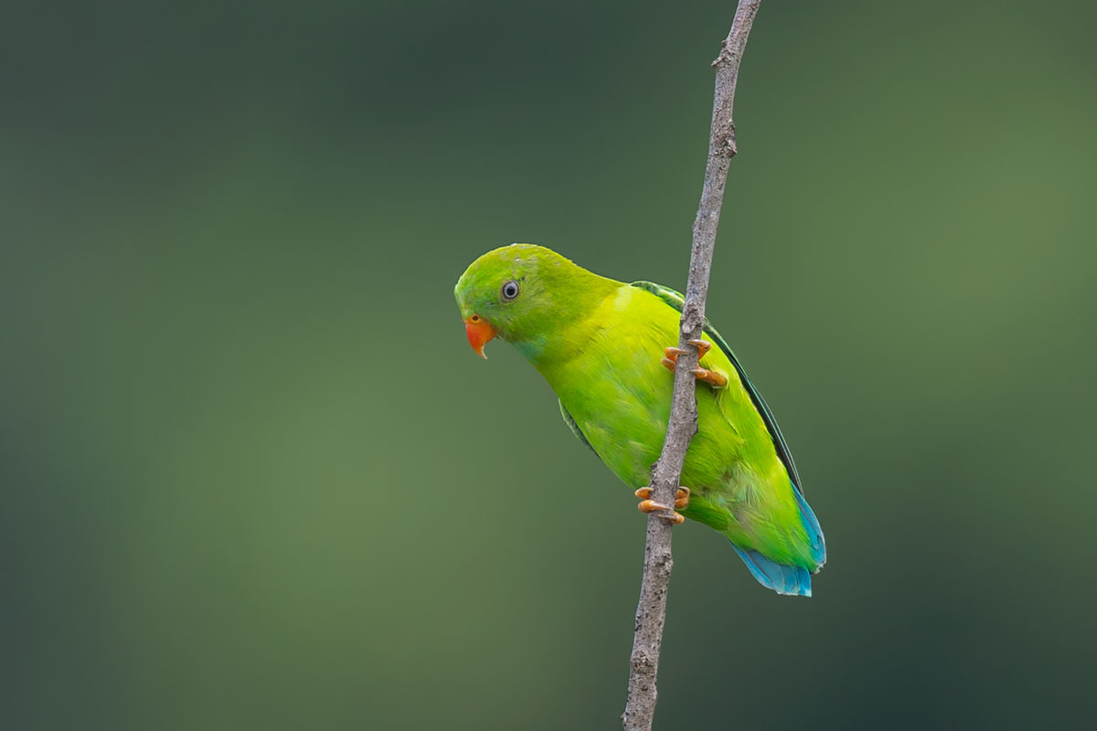 The Vernal Hanging Parrots like their cousins the Blue-crowned Hanging Parrots are small sized short-tailed, and primarily green-plumaged parrots. This species is found in Burma, southern and southeastern India and southeastern Thailand. Like the other hanging parrots, they have the ability to sleep upside down, from which their name is derived. Their diet is similar to the Blue-crowned Hanging Parrots as well.