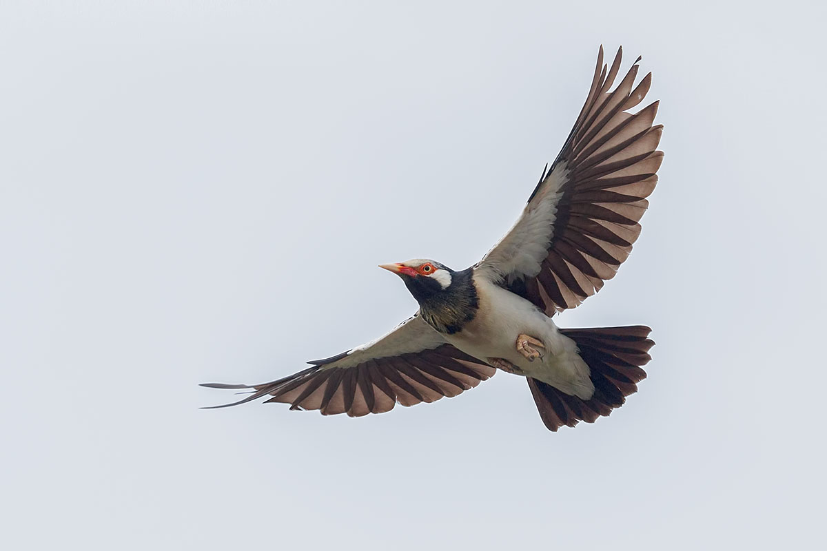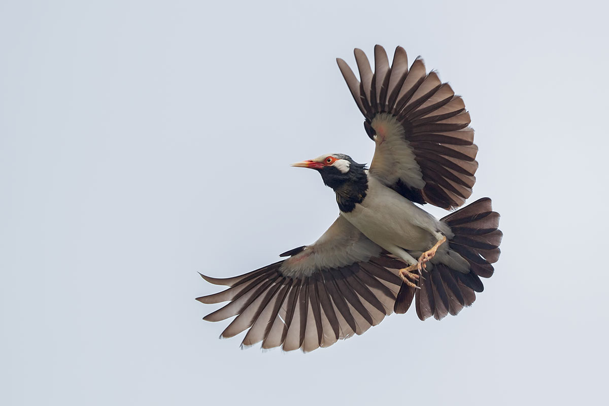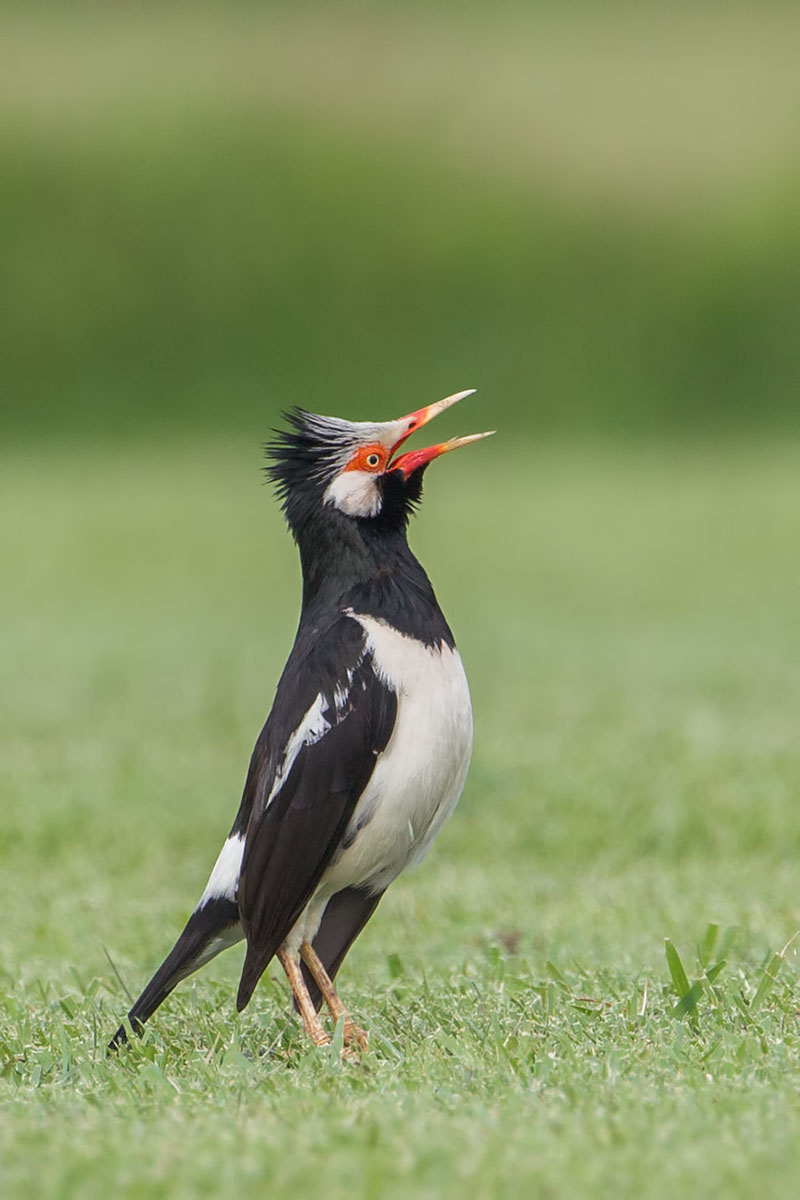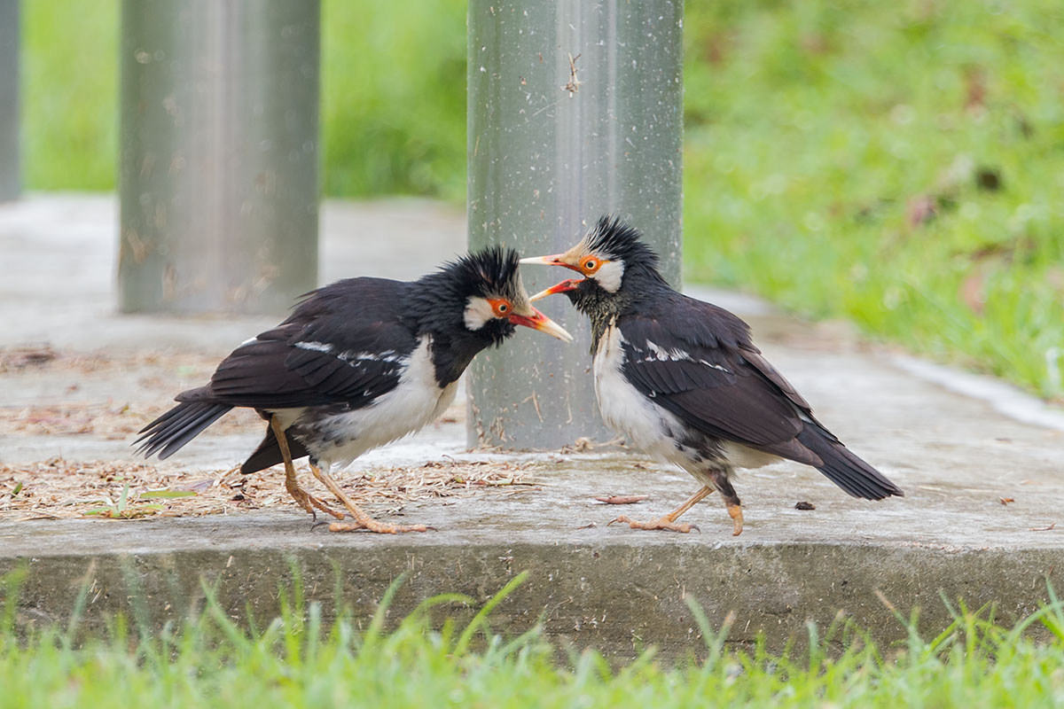 In Singapore, the Pied Myna is believed to be an introduced species with no known breeding record. However they have been seen a few times near Neo Tiew/Kranji area over a period of a few years. In early 2012, a few of them were sighted at Kranji near a golf course. Closer examination of their facial features revealed they are likely to be the subspecies floweri, originally from northern South-east Asia.