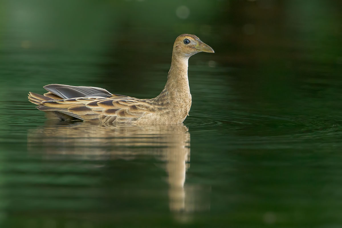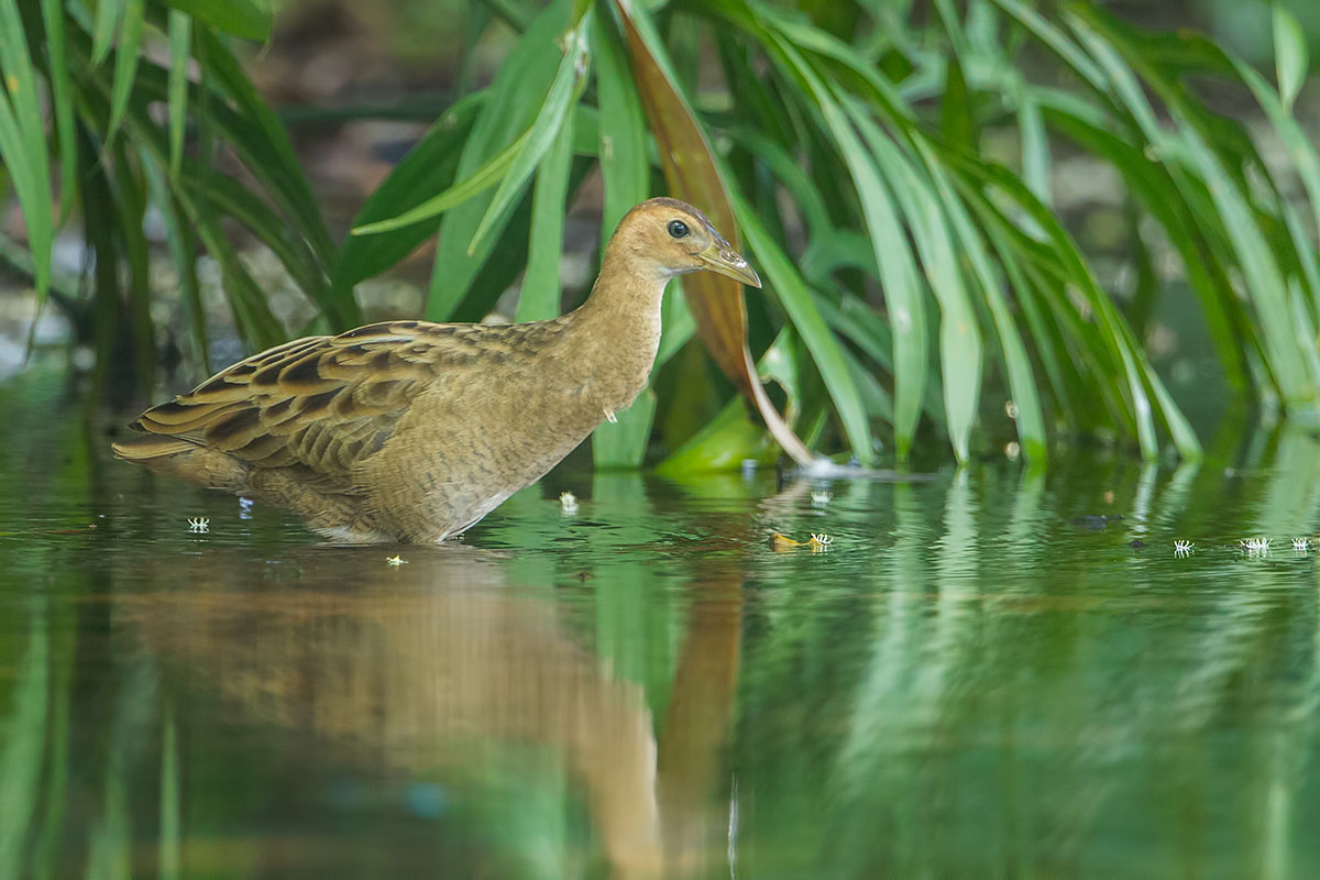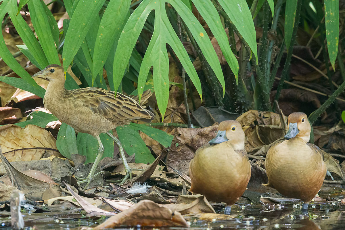 - A Watercock pretending to be a duck, in a covered part of the lake.