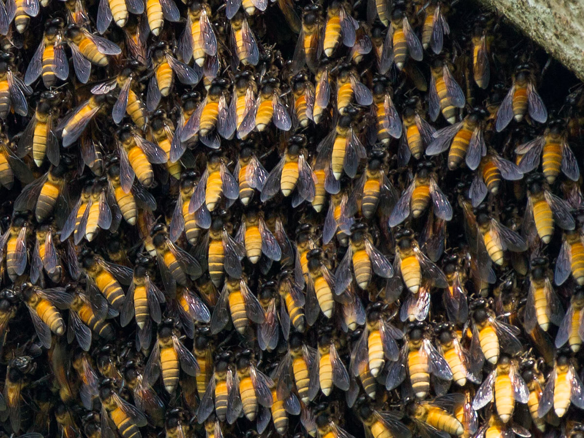 Having said that, human have been gathering honey and beeswax from these bee colonies since ancient times and have developed techniques to avoid getting stung. Chief among these is the use of smoke to calm the bees. It is fascinating to read and see these honey hunters4 (link) and 5 (link) in action. Nonetheless, we would be ill advised to try to emulate what they do when we come across these bees.