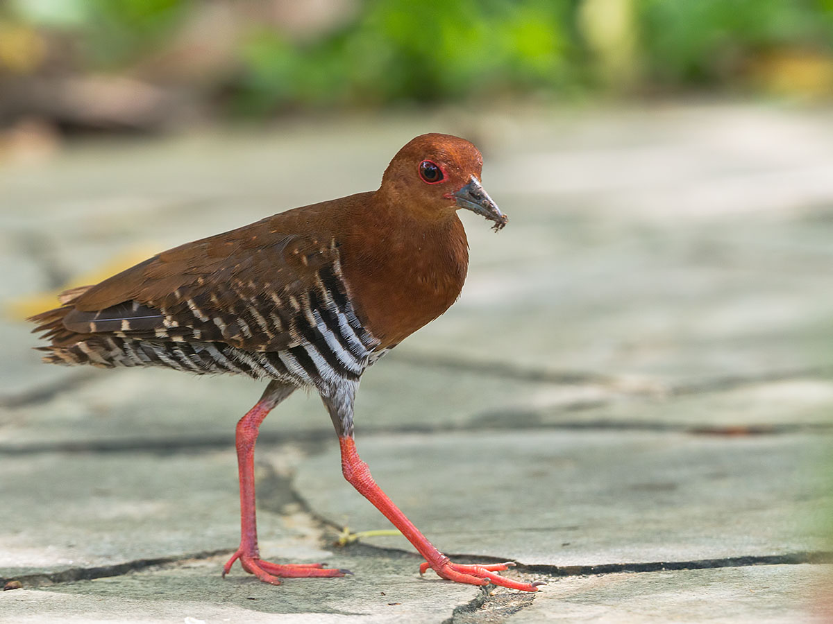 - An adult Red-legged Crake (Rallina fasciata) at Singapore Botanic Gardens. It is a breeding resident in Singapore.