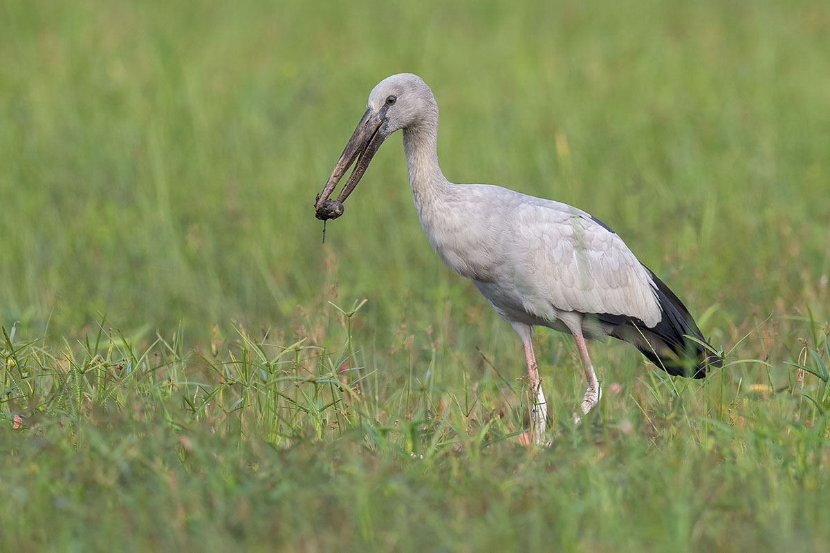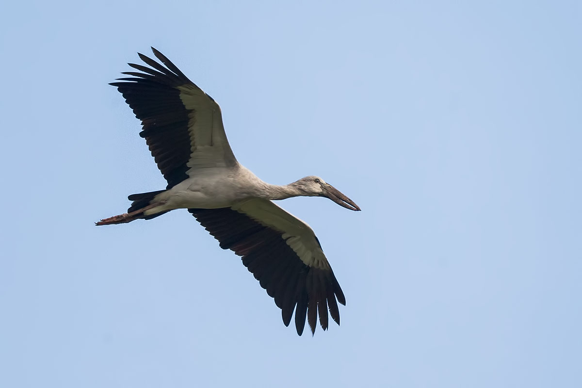 - The “open bill” of the Asian Openbill is clearly seen here denoting its age. The gap in the bill is not used for handling snail shells and forms only with age. Younger birds lacking a gap are still able to forage for snails. It’s speculated that the gap allows the tips to strike at a greater angle to increases the force that the tips can apply on snail shells.