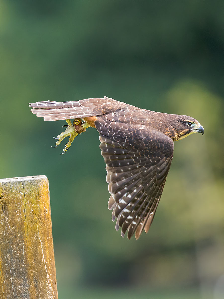 - The female New Zealand Falcon, larger in comparison to the male, and a bit darker and browner as well.