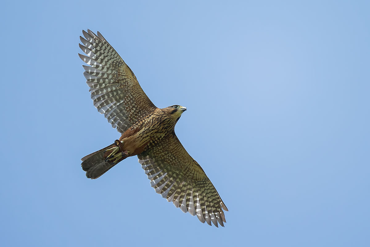 The New Zealand Falcon or kārearea (Falco novaeseelandiae) is New Zealand’s only endemic falcon and the only remaining bird of prey endemic to New Zealand. It is a versatile hunter that has the ability to hunt in both forested and open habitats. Nonetheless, it is a threatened species. Like most native New Zealand bird species, it evolved during a time when the land was free of mammals and human. Consequently it nests on the ground, which now means that they are susceptible to modern introduced predators. This, combined with widespread habitat loss, modification and degradation means that falcons have fewer places to successfully nest.
