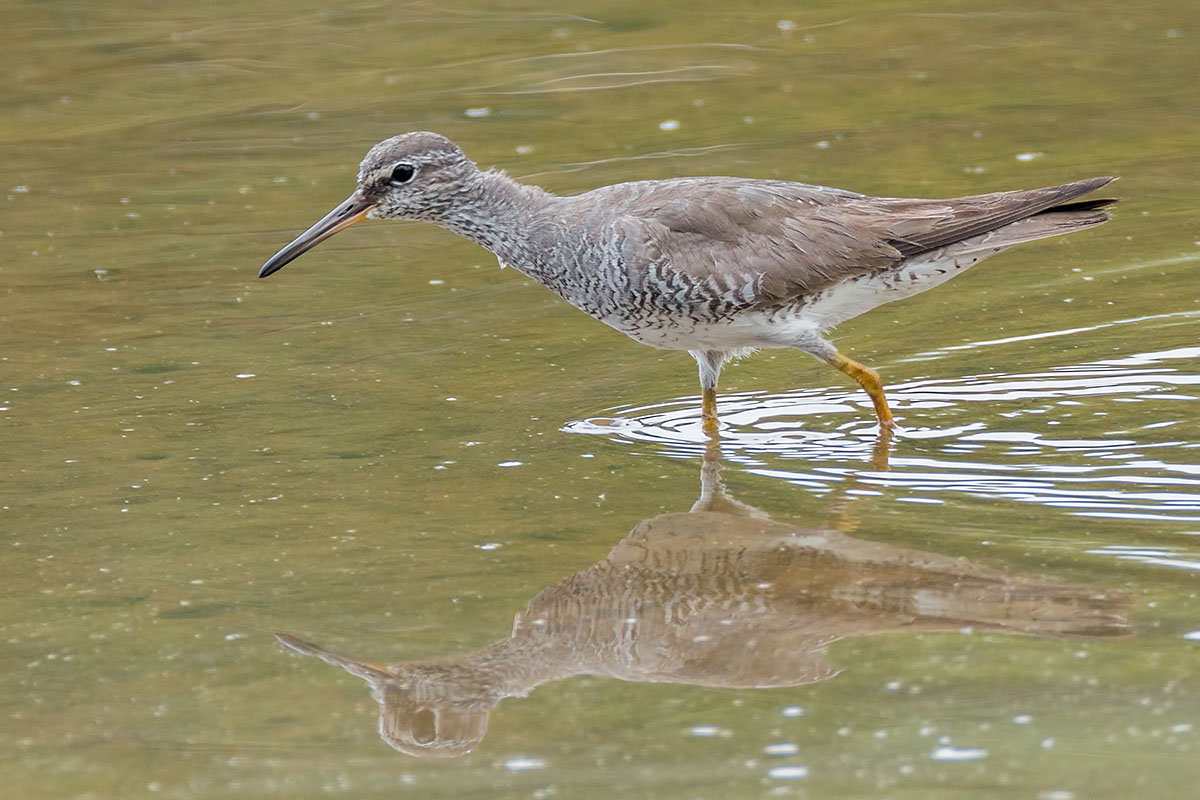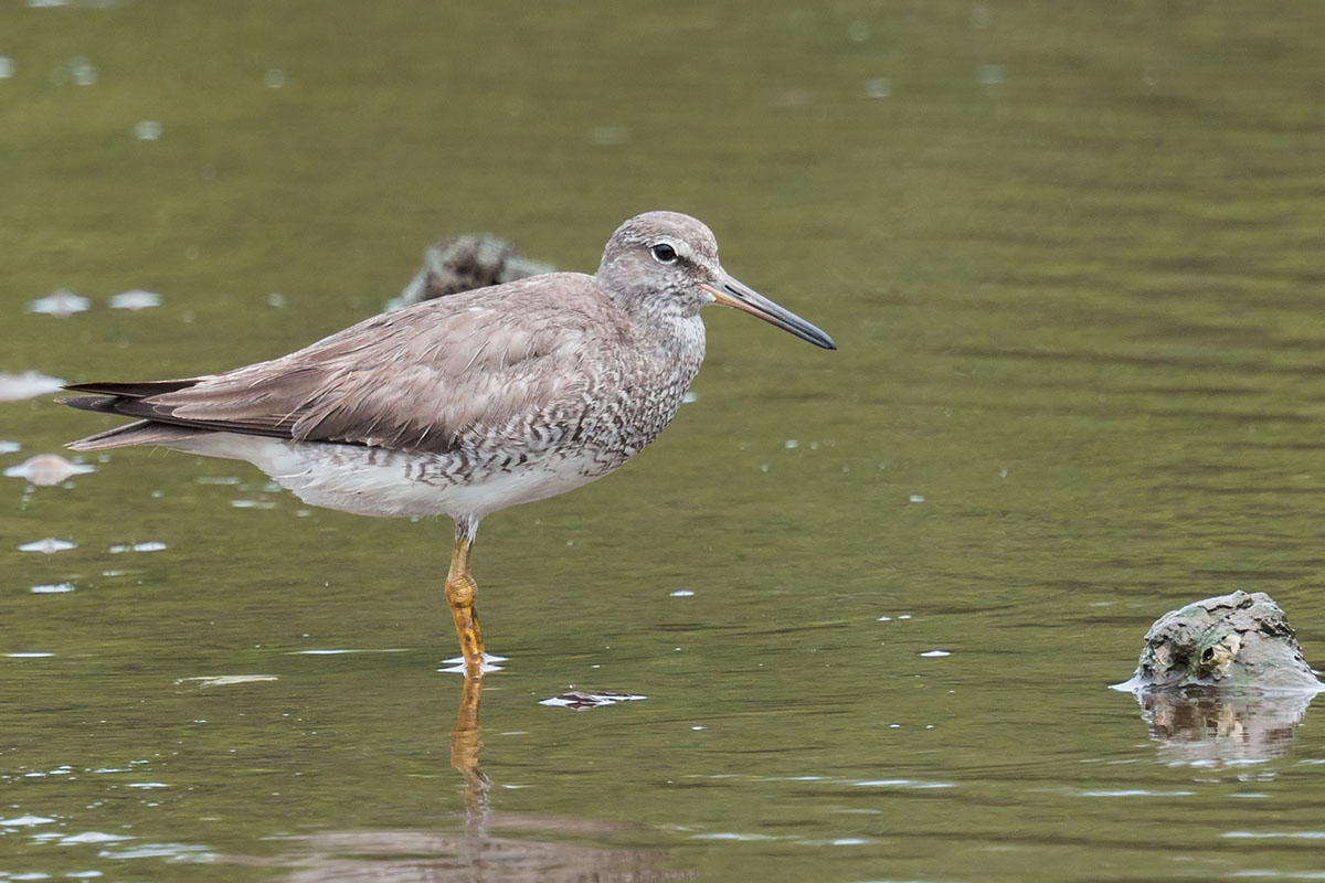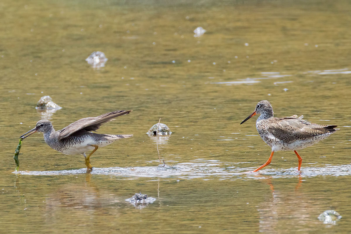- A Grey-tailed Tatttler being chased by a Common Redshank that is after its seaweed. You will immediately notice the difference in leg colour and length. Also, the Tattler has a more prominent dark loral stripe in front of its eye. Lastly the tattler’s back and wings are grey coloured without barring.