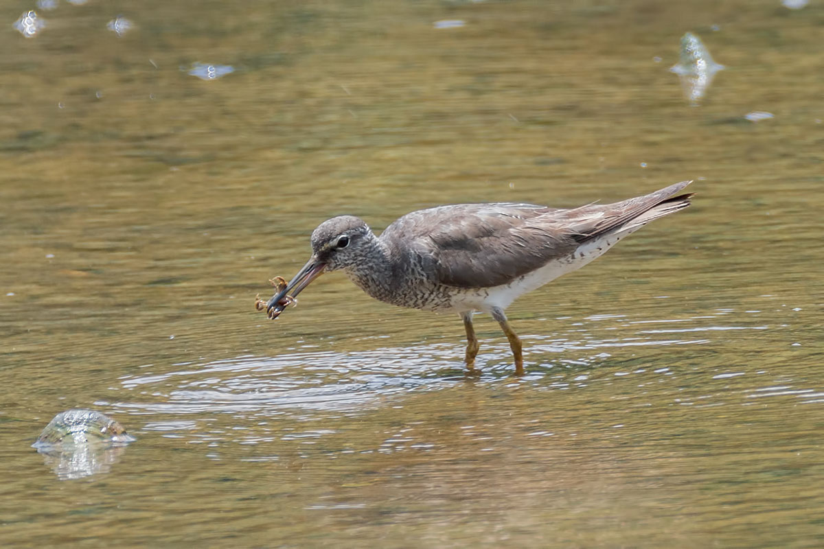 - Just caught another crab. The Tattler has been observed to wash the crab repeatedly before swallowing. This repeated washing and dropping of the crab is believe to be attempts to remove the legs before consumption.