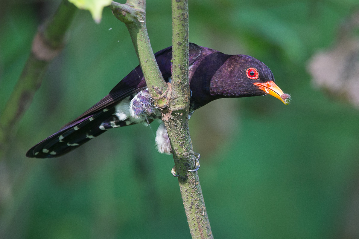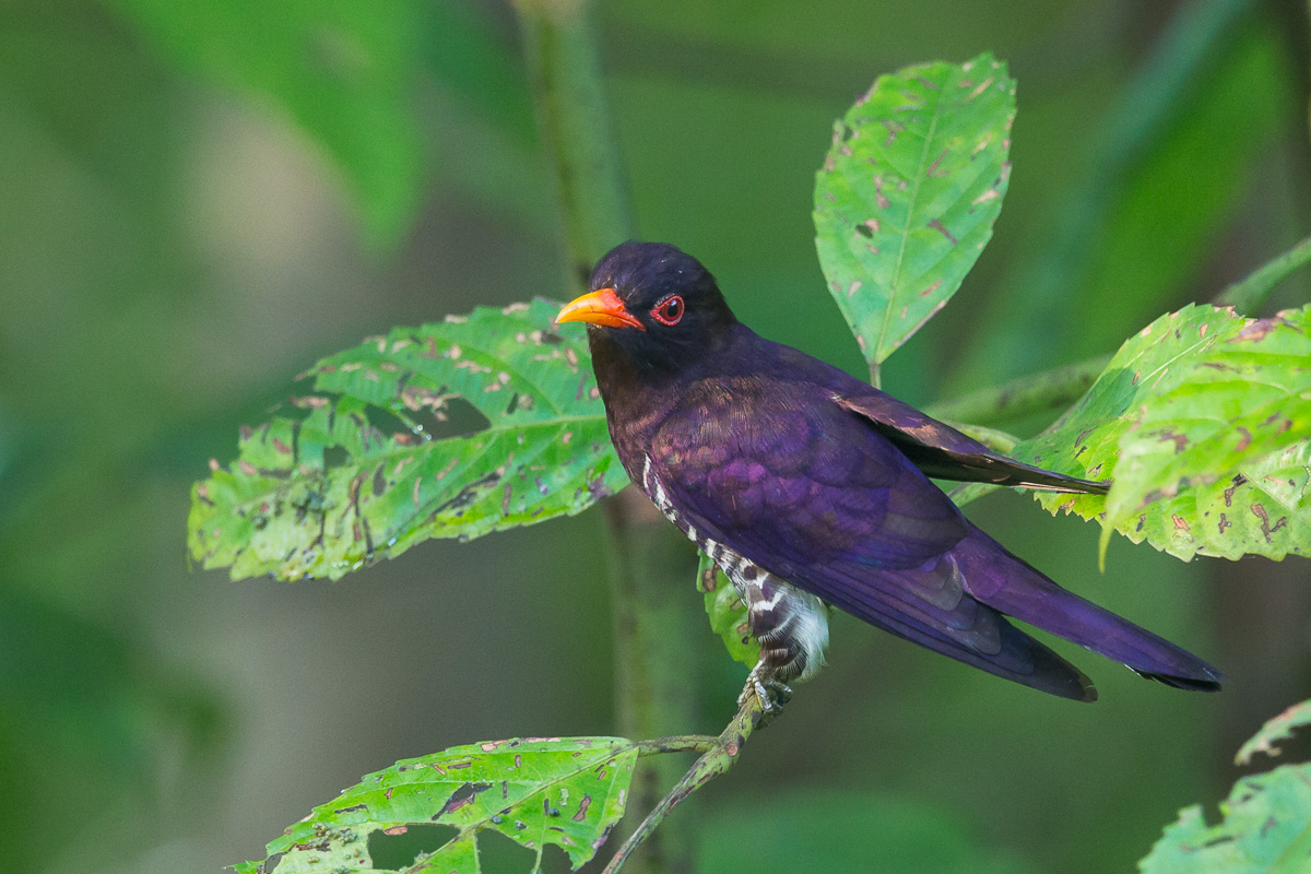 - The male Violet Cuckoo showing well it’s back. Taken at Jurong Eco Garden. Notice the leaves that have been eaten by the caterpillars.